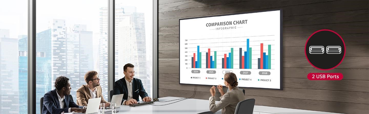 Díky podpoře dvou portů USB nabízí model UH7Q všestranné možnosti použití. Je například možné ovládat obsah na obrazovce a zároveň používat další připojená zařízení. To zahrnuje pohodlné úkoly, jako je stahování souborů PPT z externích paměťových zařízení při současném používání myši nebo klávesnice během schůzky.