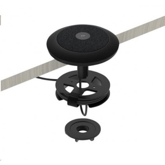 Prebytočnú kabeláž naviňte na káblový bubon, aby ste dosiahli úhľadný vzhľad konferenčného stola nielen pri pohľade zhora, ale aj zdola. Pripevnite káblový bubon priamo na stolový držiak mikrofónu alebo iný povrch pomocou priloženého montážneho materiálu.