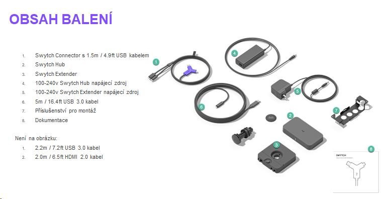 - Rozbočovač Swytch: Kompatibilný s držiakom Logitech PC (nie je súčasťou balenia)