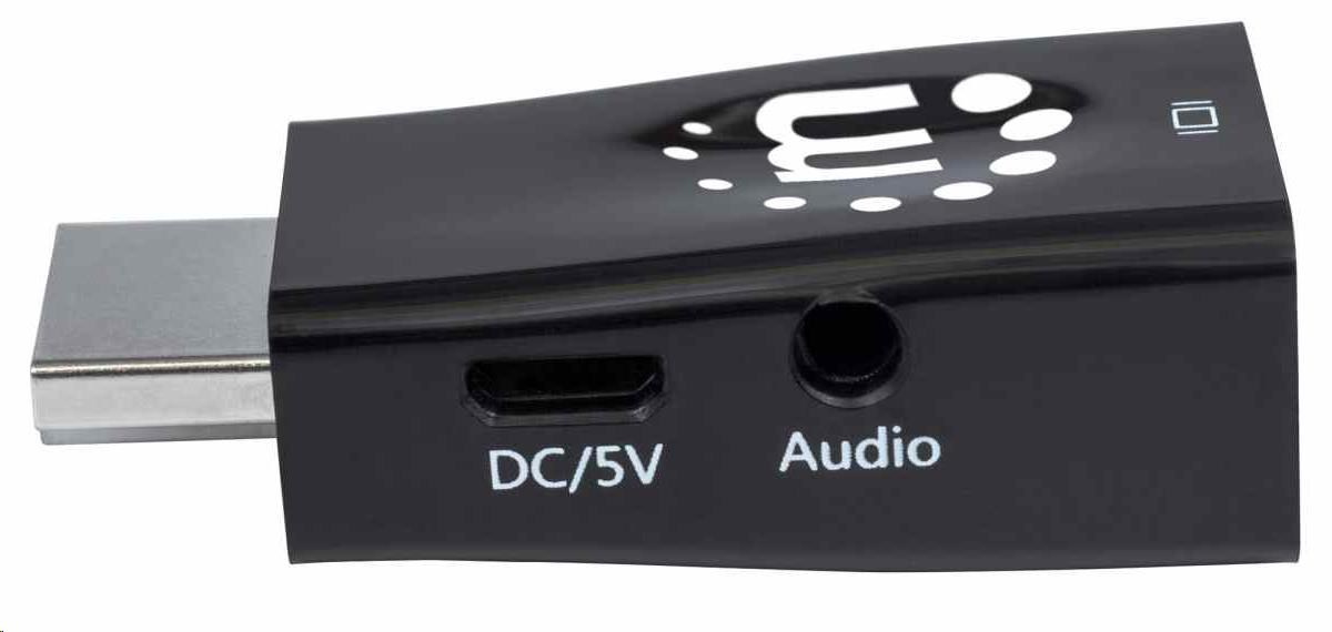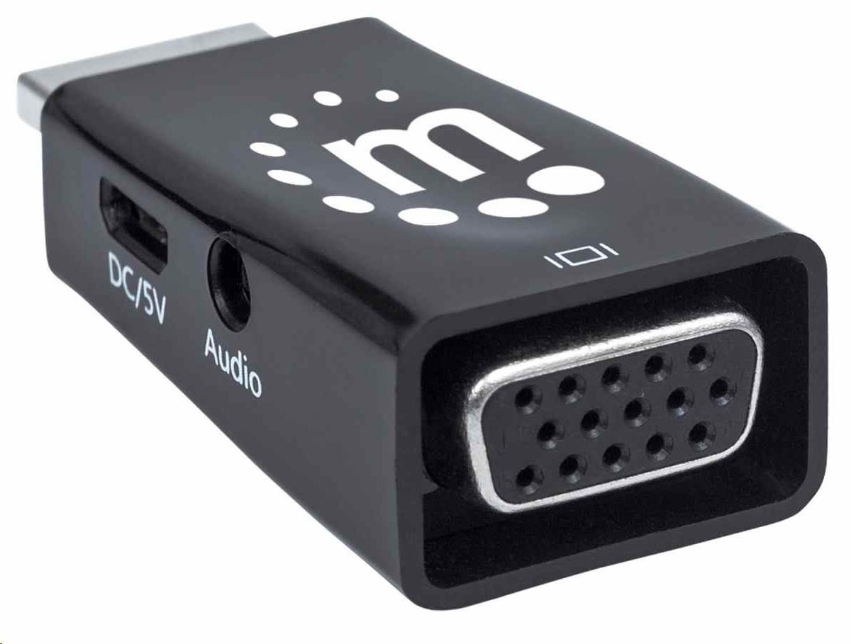 Adaptér Manhattan HDMI na VGA, mikrokonvertor, HDMI samec na VGA samica, audio, čierny