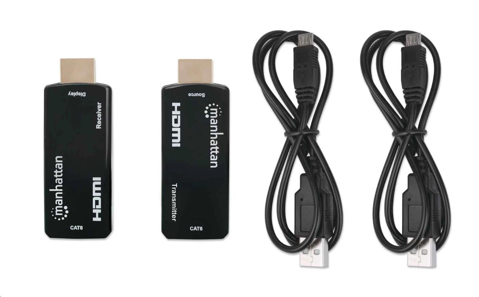 Kompaktná súprava HDMI cez Ethernet 1080p od spoločnosti Manhattan dokáže pripojiť takmer akýkoľvek digitálny zdroj HDMI (napr.g., herná konzola [PlayStation®, Xbox® a ďalšie], prehrávač Blu-ray, satelitný prijímač, digitálny rekordér atď.) k HD displeju alebo projektoru na vzdialenosť až 60 m (196 ft.) s jedným ethernetovým káblom Cat6. Súprava poskytuje spoľahlivý prenos videa s rozlíšením 1080p@60 Hz a viackanálového zvuku na väčšie vzdialenosti ako samotné káble HDMI. Jeho tenký a kompaktný dizajn je ideálny na inštaláciu v stiesnených priestoroch alebo prakticky kdekoľvek.