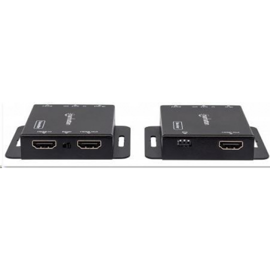Súprava Manhattan 1080p HDMI over Ethernet Extender Kit je ideálnym riešením na pripojenie prakticky akéhokoľvek zdroja HDMI (PlayStation, Xbox, Blu-ray prehrávač, satelitný prijímač, digitálny rekordér atď.) k HD displeju alebo projektoru až do vzdialenosti 50 m (164 ft.) od zdroja prostredníctvom jedného ethernetového kábla Cat6. Tieto napájané extendery HDMI poskytujú spoľahlivý prenos videa s rozlíšením 1080p a viackanálového zvuku na väčšie vzdialenosti, ako je to možné len pomocou káblov HDMI. Modul vysielača má navyše ďalší výstupný port HDMI, ktorý umožňuje umiestnenie druhého monitora v riadiacej skrini alebo pripojenie druhého displeja. Na dodatočnú kontrolu kvality obsahuje súprava Manhattan 1080p HDMI over Ethernet Extender Kit prepínač EDID na minimalizáciu problémov so zobrazením, zabudovaný prepínač ekvalizéra na korekciu dlhodobého blikania obrazovky a širokopásmový IR blaster a prijímač na diaľkové ovládanie zdrojového zariadenia.