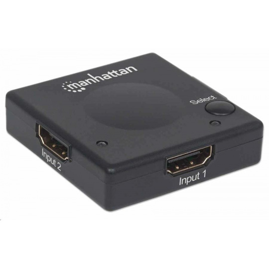 Jednoducho pripojte viacero zdrojov HDMI k jednému displeju.Manhattan 1080p 2-portový prepínač HDMI pripája dva zdroje videa HDMI - vrátane herných konzol, prehrávačov Blu-ray, satelitných prijímačov, digitálnych rekordérov, set-top boxov a ďalších zariadení - na jeden displej s vysokým rozlíšením.Flexibilné riešenie pre mnohé HD aplikácieS rastúcim počtom dostupných multimediálnych zariadení s vysokým rozlíšením rozširuje 2-portový HDMI prepínač Manhattan 1080p možnosti pripojenia pre váš HDTV, plochý monitor alebo videoprojektor. Prepínač automaticky rozpozná a vyberie aktívny zdroj HDMI a nasmeruje signál na displej. Tlačidlo manuálnej voľby navyše umožňuje používateľom vybrať zdroje, keď je súčasne zapnutých viac ako jeden zdroj HD videa.Najlepšia možná kvalita obrazuPlná zhoda s HDMI a HDCP 1.0 a 1.1 zaručuje, že 2-portový HDMI prepínač Manhattan 1080p poskytuje vysokokvalitný výkon a spoľahlivosť. Poskytuje obraz v plnom rozlíšení 1080p a podporuje 3D video, ako aj zvuk LPCM, DTS a Dolby TrueHD.