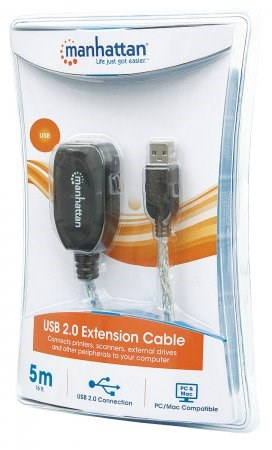 pomocou aktívneho kábla MANHATTAN Hi-Speed USB pripojíte port USB počítača k zariadeniu USB takmer kdekoľvek v miestnosti. Až tri káblové predĺženia s možnosťou reťazového zapojenia poskytujú pohodlný 15 m (50 ft.) pripojenie. Aktívny vysokorýchlostný kábel USB MANHATTAN so zabudovaným opakovačom je plne kompatibilný s rozhraním USB 1.1 a špecifikácie Hi-Speed USB, ktoré pomáhajú zariadeniam pracovať s maximálnym výkonom. Možnosť Plug and Play, univerzálnosť systému Windows7/8/Macintosh a žiadne požiadavky na externé napájanie alebo ovládače pomáhajú zabezpečiť väčšiu flexibilitu pri umiestňovaní počítačov a periférnych zariadení a pri usporiadaní kancelárie.