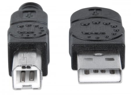 MANHATTAN Hi-Speed USB 2.0 Káble zariadení umožňujú jednoduché pripojenie periférnych zariadení a príslušenstva USB k stolným počítačom a notebookom. Ideálny na použitie s mnohými externými krytmi USB, rozbočovačmi a inými zariadeniami s funkciou hot-swap, plug and play, MANHATTAN Hi-Speed USB 2.0 Káble zariadení podporujú prenos dát rýchlosťou až 480 Mb/s v systémoch Windows a Mac pre rýchle a spoľahlivé prenosy. Pozlátené kontakty, tienenie a plne tvarované pätky s odľahčením ťahu pomáhajú zabezpečiť spoľahlivé pripojenie, maximálnu vodivosť a minimálnu stratu dát pri zníženom rušení EMI.