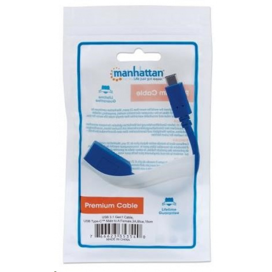 MANHATTAN USB kábel 2.0 A - USB 3.1 C (F/M), modrá