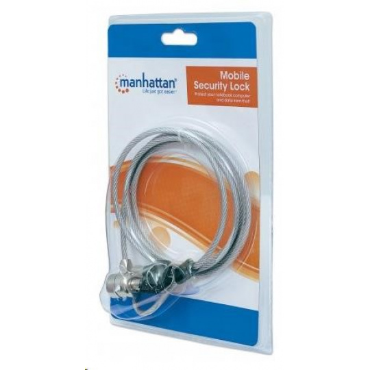 Most electronics theft is a crime of opportunity. It only takes a second to quickly steal an unprotected notebook computer from a desk or table. Millions of dollars of hardware and billions of invaluable data are stolen and unrecovered each year. The Manhattan Mobile Security Lock with its key lock (includes two keys) helps guard notebook computers, flat panel displays, projectors, cameras and other valuable portable electronics from theft.