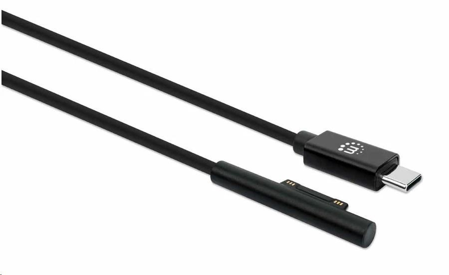 Manhattan nabíjací kábel, nabíjací kábel Surface Connect k USB-C (M/M), 15 V / 3 A, 1.8 m, čierna