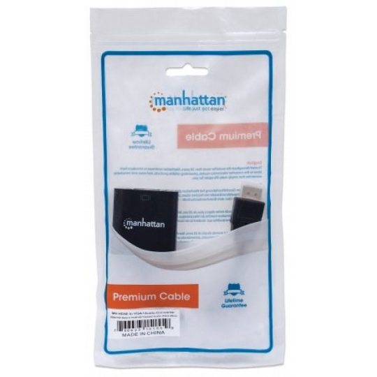 MANHATTAN Prevodník HDMI na VGA + zvuk (HDMI samec na VGA samica, so zvukom, Polybag)