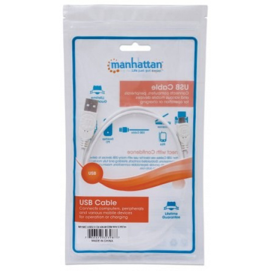 mANHATTAN Hi-Speed USB 2.0 Káble zariadení umožňujú jednoduché pripojenie periférnych zariadení a príslušenstva USB k stolným počítačom a notebookom. Ideálne na použitie s mnohými externými krytmi USB, rozbočovačmi a inými zariadeniami typu hot-swap, plug-and-play, Manhattan Hi-Speed USB 2.0 Káble zariadení podporujú prenos dát rýchlosťou až 480 Mb/s v systémoch Windows a Mac pre rýchle a spoľahlivé prenosy. Poniklované kontakty, tienenie a plne tvarované pätky s odľahčením ťahu pomáhajú zabezpečiť spoľahlivé pripojenie, maximálnu vodivosť a minimálnu stratu dát pri zníženom rušení EMI.