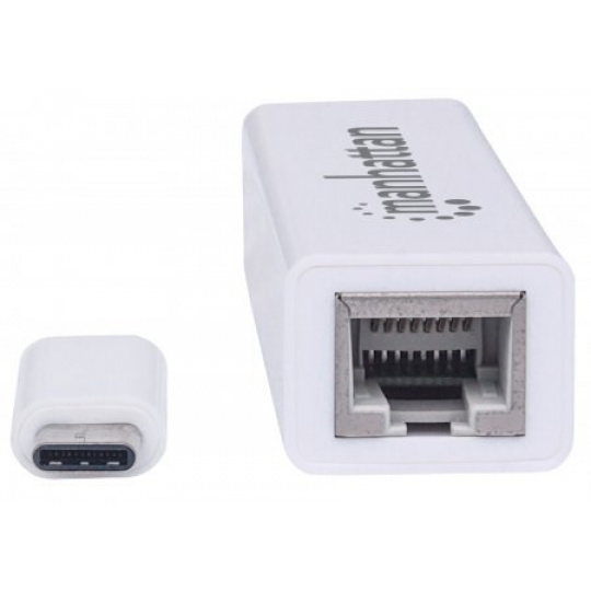 Sieťový adaptér Manhattan USB-C na gigabitovú sieť je kompaktný, vysoko výkonný sieťový adaptér, ktorý vám umožní rozšíriť váš stolový alebo prenosný počítač na sieť LAN s rýchlosťou 10/100/1000 Mb/s.