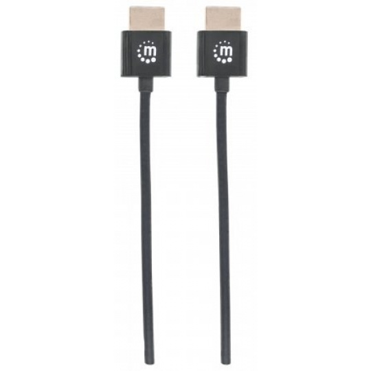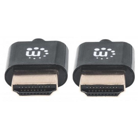 MANHATTAN Ultratenký vysokorýchlostný kábel HDMI s Ethernetom, HEC, ARC, 3D, 4K, HDMI samec - samec, tienený, čierny, 1,8 m