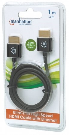 HDMI sa stalo štandardným digitálnym pripojením, ktoré poskytuje najkvalitnejší zvukový a obrazový signál prostredníctvom jediného kábla. Vďaka ultratenkej konštrukcii odolnej voči zamotaniu, pozláteným kontaktom a pevnému, ale tenkému PVC plášťu sú ultratenké vysokorýchlostné káble HDMI Manhattan starostlivo skonštruované tak, aby spĺňali vyvíjajúce sa potreby trhu s ultra vysokým rozlíšením. Vysokorýchlostné káble HDMI Manhattan poskytujú najvyššie možné rozlíšenie 4K x 2K, spätný zvukový kanál a šírku pásma 18 Gb/s pri frekvencii 600 MHz. Tieto vysokokvalitné káble poskytujú video s veľmi vysokým rozlíšením a viackanálový digitálny zvuk so zvýšenými výkonnostnými charakteristikami a vyššou presnosťou. Rozšírené funkcie zahŕňajú pripojenie k internetu pre zariadenia domácej zábavy pomocou jediného pripojenia HDMI. Vďaka jedinečnému dizajnu tohto kábla sa s ním navyše ľahko manipuluje a tvaruje bez obáv zo zasekávania a zamotávania.