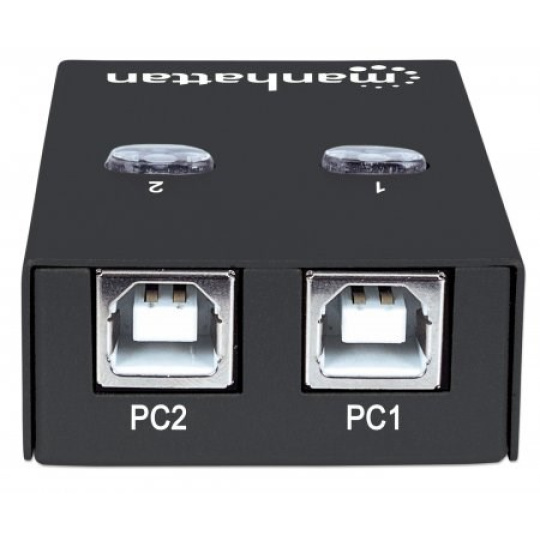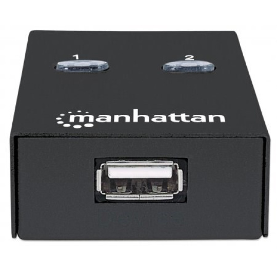 manhattan Hi-Speed USB 2.0 Automatický prepínač zdieľania ľahko umožňuje dvom počítačom zdieľať zariadenie USB. Je ideálny na domáce a kancelárske použitie, keď používatelia potrebujú zdieľať káblový modem USB, tlačiareň, digitálny fotoaparát, skener, externý úložný disk alebo iné periférne zariadenie. Použite pohodlné prepínanie prístupu na požiadanie na aktiváciu jediným kliknutím na tlačidlo na obrazovke alebo použite prepínače na palube na manuálny výber aktívneho počítača.