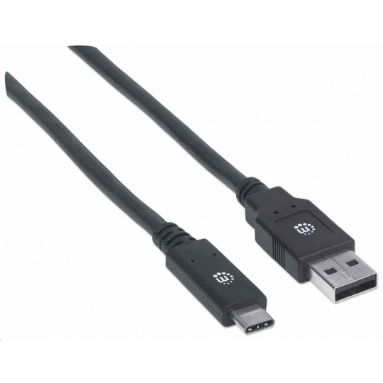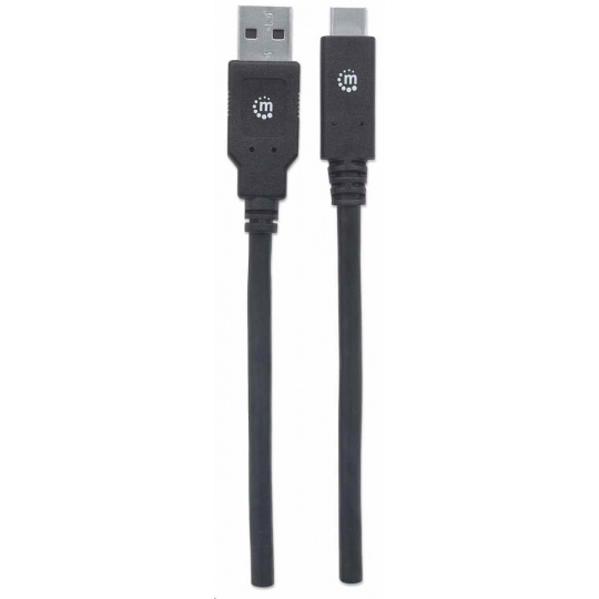 Kábel USB Manhattan, USB 3.2 Gen 1, USB-A samec na USB-C samec, 5 Gb/s, 2 m, čierna