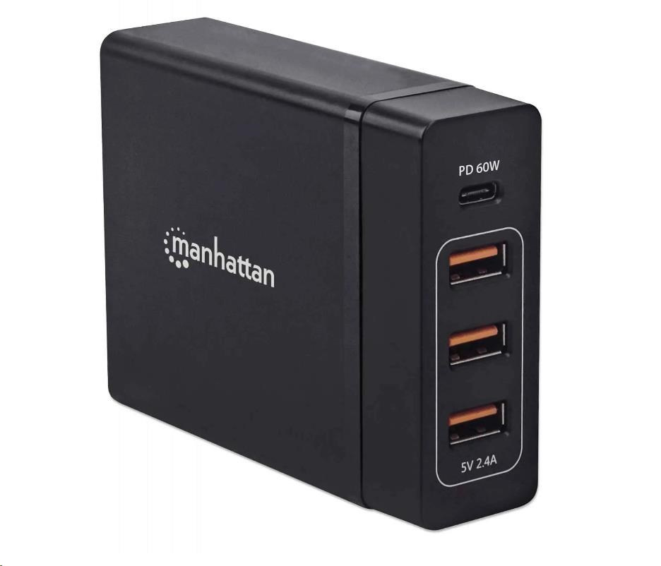 Nabíjacia stanica MANHATTAN USB Power Delivery - 72 W, čierna