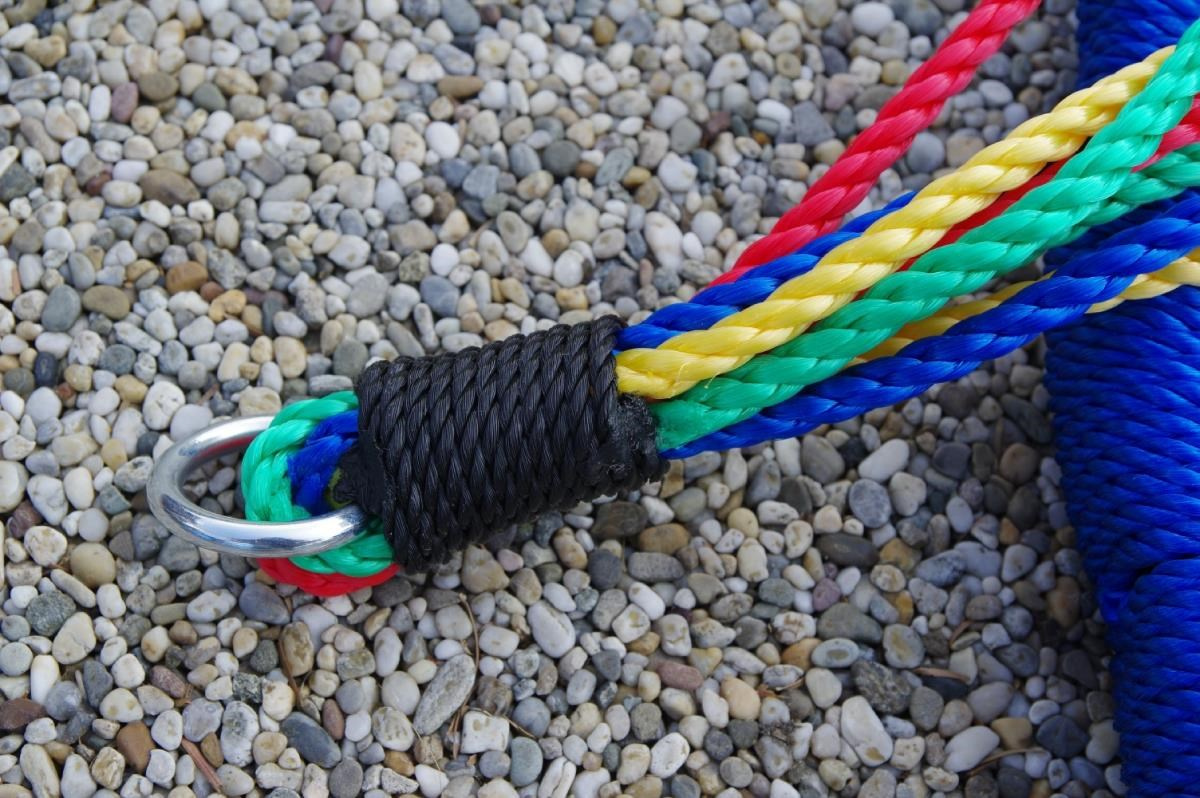 Závesná hojdačka vo tvaru kruhu je svojím priemerom 100 cm a nosnosťou až 150 kg ideálna nielen pre deti, ale aj dospelých. Veľká sedacia plocha hojdačky ponúka voľnosť pri hojdaniu aj dostatočný priestor na lenivosť. Hojdačka je zavesená na 4 dĺžkovo nastaviteľných lanech, ktoré sú zakončené kovovými krúžkami pre zavedenie na nosnú konštrukciu.