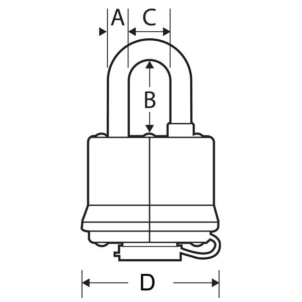 Telo z vrstvenej ocele s povrchovou úpravou z termoplastu odolnou voči poveternostným vplyvom a poškodeniu. Tŕň zo kalenej ocele s priemerom 9 mm odolný proti prestrihnutiu. Vložka so 4 zárezmi. Dvojitá západka odolná proti vypáčeniu. Bezpečnostná trieda Master Lock™ 5. Krytka kľúčovej dierky. 2ks kľúčov v balení