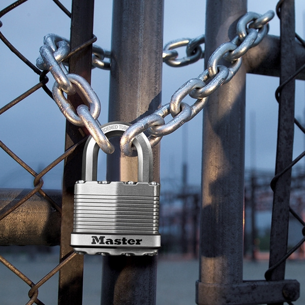 - Visací zámok o šírke 50 mm s telom z vrstvenej ocele spevnený titanom pre vyššiu odolnosť a spoľahlivosť.