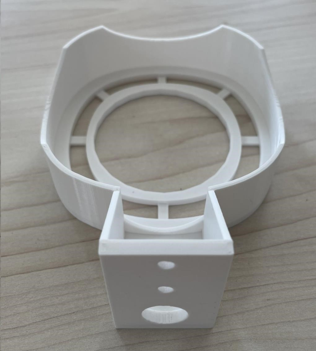 Držiak je určený na pripevnenie bezdrôtových jednotiek Deco E4, M4, P9 a S7 od TP-Link na stenu pomocou dvoch skrutiek. Držiak je vyrobený z materiálu PETG na 3D tlačiarni a má bielu farbu.