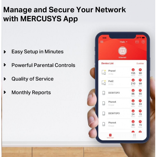 Jednoduché ovládanie pomocou aplikácie - Pomocou aplikácie MERCUSYS môžete rýchlo nastaviť a spravovať svoju WiFi.
