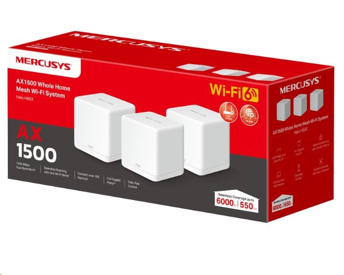 MERCUSYS Halo H60X(3-pack) WiFi6 Mesh (AX1500,2,4GHz/5GHz,3xGbELAN/WAN(1x XR Unit), 2xGbELAN/WAN (2x XS Unit)