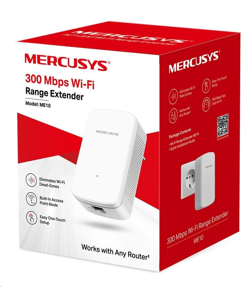 MERCUSYS ME10 WiFi4 Extender/Repeater (N300,2,4GHz,1x100Mb/s LAN)