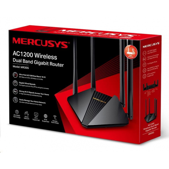 MERCUSYS MR30G EasyMesh WiFi5 router (AC1200, 2,4GHz/5GHz, 2xGbELAN, 1xGbEWAN)