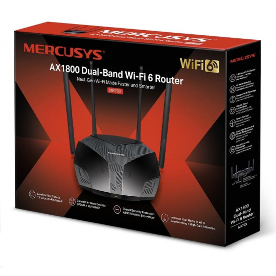 MERCUSYS MR70X Aginet WiFi6 router (AX1800, 2,4GHz/5GHz, 3xGbELAN, 1xGbEWAN)