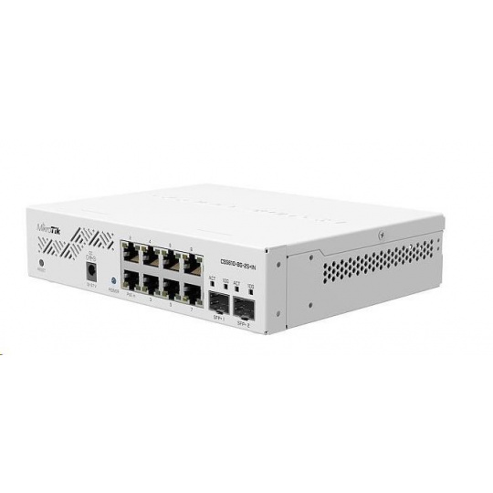 MikroTik Cloud Smart Switch CSS610-8G-2S+IN je konfigurovateľný 8-portový gigabitový prepínač s dvoma SFP+ slotmi, bez ventilátora a s montážnou sadou do 19" stojana. Súčasťou je aj špeciálne navrhnutý operačný systém na rýchle prepínanie a veľký rozsah nastavení - SwOS.
