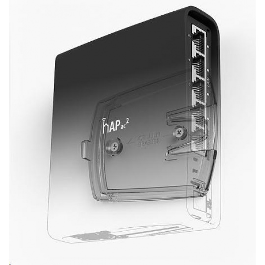 hAP ac2 je nový výkonný router podporujúci štandard 802.11b/g/n/ac. Je integrovaný ako 2.4GHz a 5GHz Wi-Fi, dvojreťazová anténa 2.5dBi, max.výkon 27 dBm pre 2.4GHz a 26dBm pre 5GHz. Štvorjadrový procesor je taktovaný na 716 MHz a podporuje ho 128 MB pamäte DDR RAM. K dispozícii je celkovo päť 1000Mb/s ethernetových portov s podporou PoE in (port1).