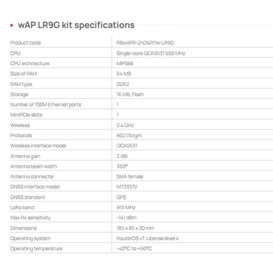 MikroTik RBwAPR-2nD&R11e-LR9G 2,4GHz LoRa gateway wAP LR9G kit