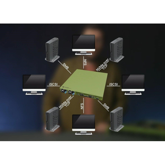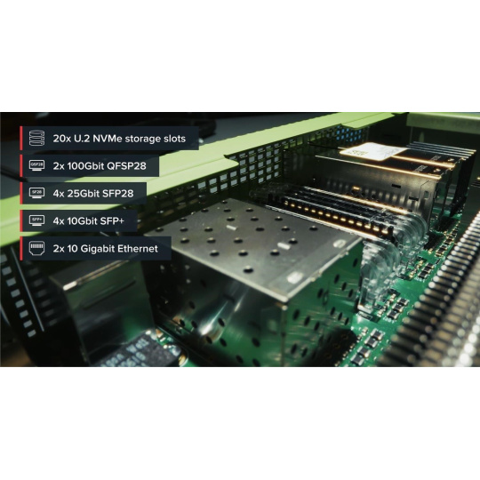 A high-performance, all-in-one storage, networking, and container platform designed for enterprise environments. Third parties control your data. Should they? Your business, your files, your future – handed over to external providers with unclear policies and unknown risks. Stop relying on the cloud. Own your infrastructure. Introducing the Rose Data Server (RDS2216) – a high-performance, all-in-one storage, networking, and container platform designed for enterprise environments. Secure, scalable, and under your control. WHY CHOOSE RDS2216? • 20 U.2 NVMe storage slots – Ultra-fast, high-density storage for demanding workloads. • 100G high-speed networking – 2× 100G QSFP28 ports, 4× 25G SFP28 ports, 4× 10G SFP+ ports, 2× 10G Ethernet ports, and an extra SFF-8644 interface for flexible connectivity. • 16-core 2 GHz ARM CPU + 32GB DDR4 RAM – High-performance processing for networking, storage, and virtualization. • Massive energy savings – Cut power consumption and heat output while maintaining high performance – an eco-friendly solution for data-heavy environments. • Runs RouterOS – The most flexible, modular networking OS. Supports advanced storage capabilities, including exporting block devices over NVMe-TCP, encryption layers, and modular storage configurations for scalable infrastructure. No subscriptions. No paywalls. • Container & VM-ready – Run MinIO, Nextcloud, Shinobi, Frigate, and other applications with ease. We’ve added two USB ports for additional devices and further adaptability. • Includes dual hot-swappable power supplies – Ensuring uninterrupted operation and quick replacement without unnecessary downtime. ONE DEVICE. ENDLESS POSSIBILITIES It’s a breakthrough in flexible networking and storage for the most demanding enterprise environments. Reliable 100-Gigabit connectivity. Ultra-fast NVMe storage support. Containers. Enterprise-grade performance. Konektory a rozhraní Počet M.2 slotů 2 Počet U.2 PCIe slotů 20 Rychlost LAN (2) 1/2.5/5/10Gbps + (1) 10/100/1000Mbps management Rozhraní M.2 SATA, U.2 PCIe Gen3 Počet USB 2.0 1 Počet USB 3.0/3.1/3.2 Gen1 1 Napájení Typ napájení Ze sítě (230V) Redundantní napájení Ano Max. spotřeba energie [W] 286 Fyzické charakteristiky Provedení Rackmount Počet "U" pozic 1 Provozní teplota [°C] -20 až 50 Hloubka [mm] 476 Šířka [mm] 443 Výška [mm] 44 Hardware Počet podporovaných HDD 22 Formát disku M.2 2280, 2.5" CPU AL73400 Frekvence CPU [MHz] 2000 Počet CPU jader 16 Interní uložiště 32 MB + 128 MB RAM 32 GB Obecné Podpora rozšiřovacích jednotek Ano Software Operační systém RouterOS - L6.