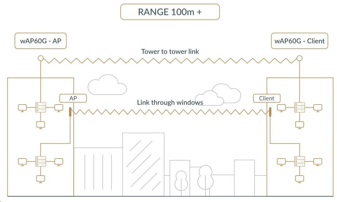 RBwAPG-60ad je revolučnou novinkou v sortimente MikroTik, ktorá zaujme každého, kto buduje spoje na krátke vzdialenosti. RBwAPG-60ad je kompletné bezlicenčné spojenie v pásme 60 GHz, ktoré pracuje so štandardom 802.11ad, ktorý v reálnej prevádzke umožňuje priepustnosť až 1000 Mb/s Full Duplex na vzdialenosť do 100 m. RouterBoard je ako vždy vybavený veľmi obľúbeným operačným systémom RouterOS s licenciou L3. Ak chcete upgradovať jednu z jednotiek na prístupový bod, stačí si zakúpiť licenciu L4.