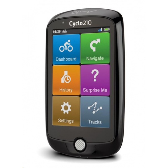 Navigácia na bicykel Cyclo™ 210 má intuitívne rozhranie a je používateľsky komfortná, takže počas niekoľkých minút budete môcť vyraziť na cesty na bicykli.