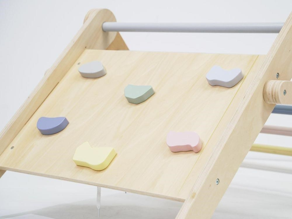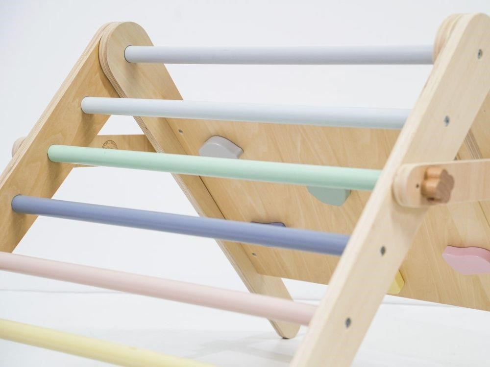 Montessori rostoucí Piklerové trojúhelník 3v1 s activity boardem a prknem 2v1 - pastel - 2. jakost