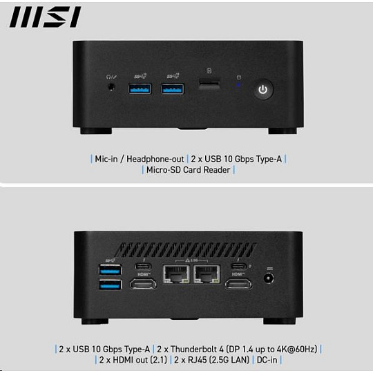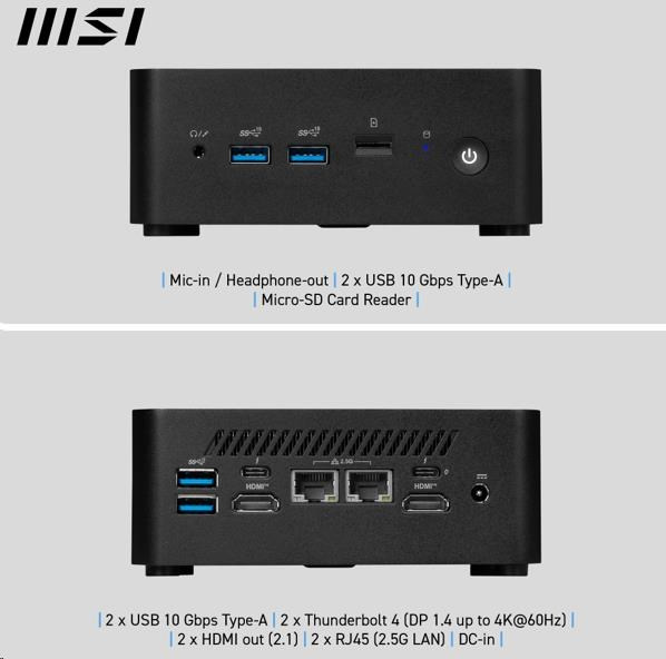 Prevedenie PC:USFF (Ultra Small Form Factor); Operačný systém:Bez OS; Typ procesora:Intel Core 3; Grafický čip:nespecifikováno; Typ disku:SSD; Rozhranie:USB 3.2 Gen 2, SD karta, LAN (RJ-45), HDMI, Thunderbolt; Výbava PC:Čítačka kariet; Druh optickej mechaniky:Bez optickej mechaniky.... viac