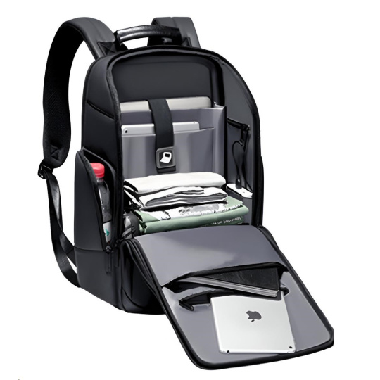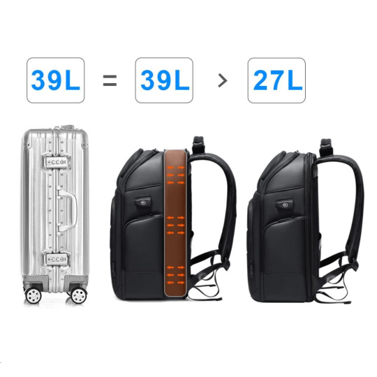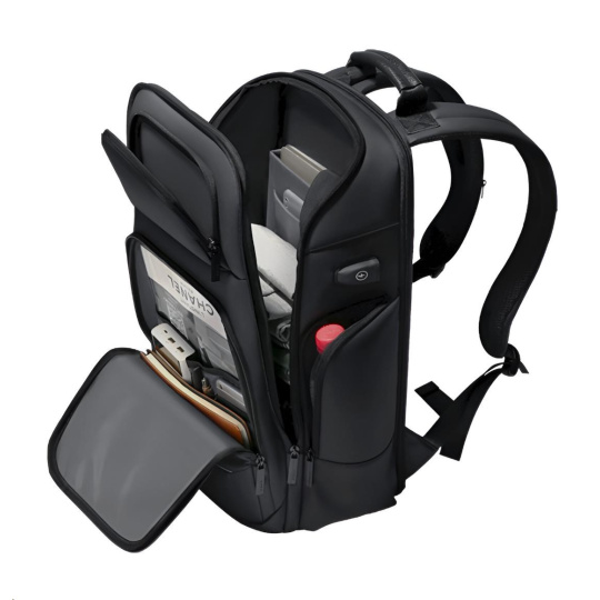 MYBALO ASTON Perfektní volba pro minimalisty s dobrým vkusem 6 ikon: - Nejtenčí batoh - Elegantní - Kapsa na notebook do 15,6" - Kapsa na tablet do 9" - Otevírání o 180 stupňů - USB a USB-C port - Drží tvar - Voděodolný - Skryté kapsy Elegantní a minimalistický Jedná se o velmi elegantní a minimalistický batoh. S tímto parťákem neuděláte chybu při běžném nošení do města, ani na důležité schůzce. Tenký batoh MYBALO Aston je batoh s vůbec nejmenší hloubkou z naší nabídky. Díky tomu působí elegantně a minimalisticky, ale i přesto se do něj vejdou všechny vaše nezbytnosti. Kvalitní voděodolný materiál, dlouhá životnost Kvalitní umělá kůže zajišťuje trvanlivost a odolnost batohu proti vodě a opotřebení. MYBALO Aston tak bude vaším společníkem opravdu dlouho. Drží tvar Batoh si zachovává svůj tvar také v případě, že jej budete mít úplně prázdný. Vestavěný USB a USB-C port Nabíjejte svá elektronická zařízení kdekoli a kdykoli díky vestavěnému USB a USB-C portu. Popruh k uchycení na kufr Cestujte pohodlně. Kdykoli chcete mít volná záda, jednoduše připevněte batoh na rukojeť svého kufru. Pohodlné polstrování Užijte si komfortní nošení díky kvalitnímu a prodyšnému polstrování ramenních popruhů a zádové části. Další praktické kapsy Zorganizujte si pohodlně a snadno své věci díky množství vychytaných kapes. Skryté kapsy V zádové části a na ramenním popruhu najdete skryté kapsy pro bezpečné uložení cenností. Vnitřní kapsy Vnitřní kapsy slouží pro snadnou organizaci všech vašich věcí. Přední kapsa Přední kapsa je určena pro věci, které chcete mít rychle a snadno po ruce. Parametry: - Rozměry: 46 x 30 x 9 cm - Objem: 11 l - Hmotnost: 1,19 kg - Kapsa na notebook: Ano (do vel. 15,6") - Kapsa na tablet: Ano (do vel. 9") - USB port: Ano - Voděodolnost: Ano - Hlavní materiál: Ekokůže + Polyester - Podšívka: Polyester - Barva: Černá.