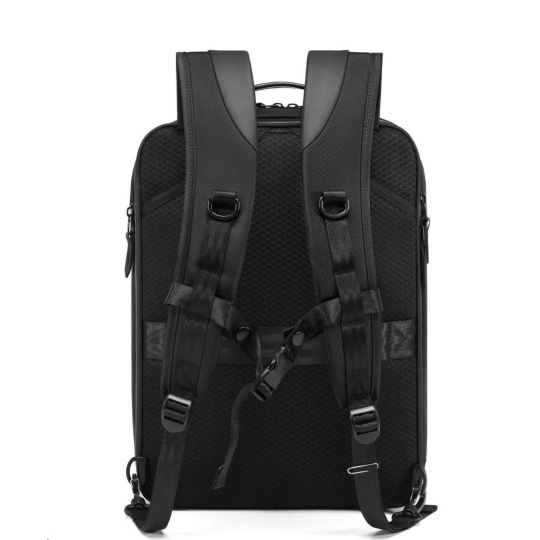 MYBALO ASTON Perfektní volba pro minimalisty s dobrým vkusem 6 ikon: - Nejtenčí batoh - Elegantní - Kapsa na notebook do 15,6" - Kapsa na tablet do 9" - Otevírání o 180 stupňů - USB a USB-C port - Drží tvar - Voděodolný - Skryté kapsy Elegantní a minimalistický Jedná se o velmi elegantní a minimalistický batoh. S tímto parťákem neuděláte chybu při běžném nošení do města, ani na důležité schůzce. Tenký batoh MYBALO Aston je batoh s vůbec nejmenší hloubkou z naší nabídky. Díky tomu působí elegantně a minimalisticky, ale i přesto se do něj vejdou všechny vaše nezbytnosti. Kvalitní voděodolný materiál, dlouhá životnost Kvalitní umělá kůže zajišťuje trvanlivost a odolnost batohu proti vodě a opotřebení. MYBALO Aston tak bude vaším společníkem opravdu dlouho. Drží tvar Batoh si zachovává svůj tvar také v případě, že jej budete mít úplně prázdný. Vestavěný USB a USB-C port Nabíjejte svá elektronická zařízení kdekoli a kdykoli díky vestavěnému USB a USB-C portu. Popruh k uchycení na kufr Cestujte pohodlně. Kdykoli chcete mít volná záda, jednoduše připevněte batoh na rukojeť svého kufru. Pohodlné polstrování Užijte si komfortní nošení díky kvalitnímu a prodyšnému polstrování ramenních popruhů a zádové části. Další praktické kapsy Zorganizujte si pohodlně a snadno své věci díky množství vychytaných kapes. Skryté kapsy V zádové části a na ramenním popruhu najdete skryté kapsy pro bezpečné uložení cenností. Vnitřní kapsy Vnitřní kapsy slouží pro snadnou organizaci všech vašich věcí. Přední kapsa Přední kapsa je určena pro věci, které chcete mít rychle a snadno po ruce. Parametry: - Rozměry: 46 x 30 x 9 cm - Objem: 11 l - Hmotnost: 1,19 kg - Kapsa na notebook: Ano (do vel. 15,6") - Kapsa na tablet: Ano (do vel. 9") - USB port: Ano - Voděodolnost: Ano - Hlavní materiál: Ekokůže + Polyester - Podšívka: Polyester - Barva: Černá
