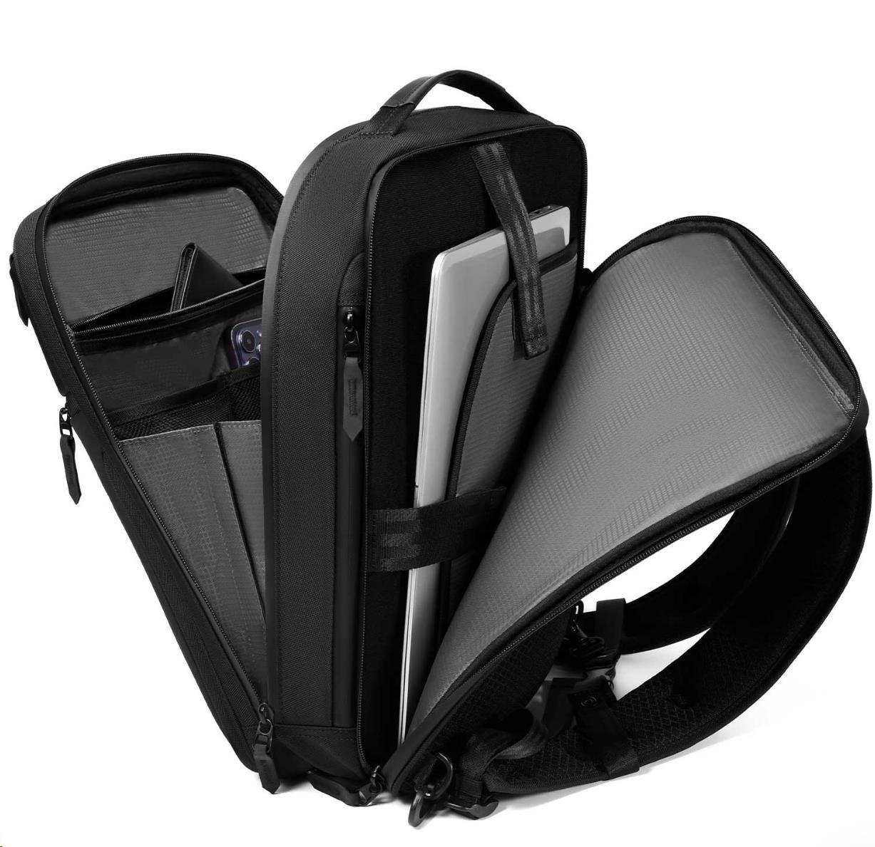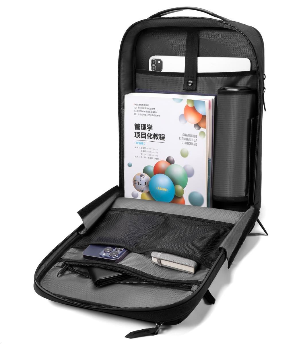 MYBALO ASTON Perfektní volba pro minimalisty s dobrým vkusem 6 ikon: - Nejtenčí batoh - Elegantní - Kapsa na notebook do 15,6" - Kapsa na tablet do 9" - Otevírání o 180 stupňů - USB a USB-C port - Drží tvar - Voděodolný - Skryté kapsy Elegantní a minimalistický Jedná se o velmi elegantní a minimalistický batoh. S tímto parťákem neuděláte chybu při běžném nošení do města, ani na důležité schůzce. Tenký batoh MYBALO Aston je batoh s vůbec nejmenší hloubkou z naší nabídky. Díky tomu působí elegantně a minimalisticky, ale i přesto se do něj vejdou všechny vaše nezbytnosti. Kvalitní voděodolný materiál, dlouhá životnost Kvalitní umělá kůže zajišťuje trvanlivost a odolnost batohu proti vodě a opotřebení. MYBALO Aston tak bude vaším společníkem opravdu dlouho. Drží tvar Batoh si zachovává svůj tvar také v případě, že jej budete mít úplně prázdný. Vestavěný USB a USB-C port Nabíjejte svá elektronická zařízení kdekoli a kdykoli díky vestavěnému USB a USB-C portu. Popruh k uchycení na kufr Cestujte pohodlně. Kdykoli chcete mít volná záda, jednoduše připevněte batoh na rukojeť svého kufru. Pohodlné polstrování Užijte si komfortní nošení díky kvalitnímu a prodyšnému polstrování ramenních popruhů a zádové části. Další praktické kapsy Zorganizujte si pohodlně a snadno své věci díky množství vychytaných kapes. Skryté kapsy V zádové části a na ramenním popruhu najdete skryté kapsy pro bezpečné uložení cenností. Vnitřní kapsy Vnitřní kapsy slouží pro snadnou organizaci všech vašich věcí. Přední kapsa Přední kapsa je určena pro věci, které chcete mít rychle a snadno po ruce. Parametry: - Rozměry: 46 x 30 x 9 cm - Objem: 11 l - Hmotnost: 1,19 kg - Kapsa na notebook: Ano (do vel. 15,6") - Kapsa na tablet: Ano (do vel. 9") - USB port: Ano - Voděodolnost: Ano - Hlavní materiál: Ekokůže + Polyester - Podšívka: Polyester - Barva: Černá.