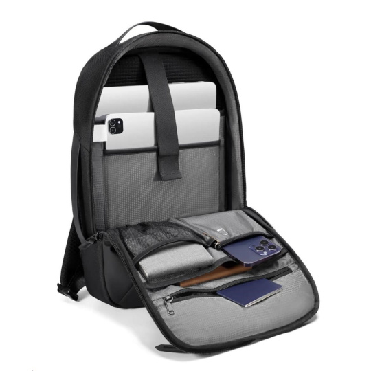 MYBALO ASTON Perfektní volba pro minimalisty s dobrým vkusem 6 ikon: - Nejtenčí batoh - Elegantní - Kapsa na notebook do 15,6" - Kapsa na tablet do 9" - Otevírání o 180 stupňů - USB a USB-C port - Drží tvar - Voděodolný - Skryté kapsy Elegantní a minimalistický Jedná se o velmi elegantní a minimalistický batoh. S tímto parťákem neuděláte chybu při běžném nošení do města, ani na důležité schůzce. Tenký batoh MYBALO Aston je batoh s vůbec nejmenší hloubkou z naší nabídky. Díky tomu působí elegantně a minimalisticky, ale i přesto se do něj vejdou všechny vaše nezbytnosti. Kvalitní voděodolný materiál, dlouhá životnost Kvalitní umělá kůže zajišťuje trvanlivost a odolnost batohu proti vodě a opotřebení. MYBALO Aston tak bude vaším společníkem opravdu dlouho. Drží tvar Batoh si zachovává svůj tvar také v případě, že jej budete mít úplně prázdný. Vestavěný USB a USB-C port Nabíjejte svá elektronická zařízení kdekoli a kdykoli díky vestavěnému USB a USB-C portu. Popruh k uchycení na kufr Cestujte pohodlně. Kdykoli chcete mít volná záda, jednoduše připevněte batoh na rukojeť svého kufru. Pohodlné polstrování Užijte si komfortní nošení díky kvalitnímu a prodyšnému polstrování ramenních popruhů a zádové části. Další praktické kapsy Zorganizujte si pohodlně a snadno své věci díky množství vychytaných kapes. Skryté kapsy V zádové části a na ramenním popruhu najdete skryté kapsy pro bezpečné uložení cenností. Vnitřní kapsy Vnitřní kapsy slouží pro snadnou organizaci všech vašich věcí. Přední kapsa Přední kapsa je určena pro věci, které chcete mít rychle a snadno po ruce. Parametry: - Rozměry: 46 x 30 x 9 cm - Objem: 11 l - Hmotnost: 1,19 kg - Kapsa na notebook: Ano (do vel. 15,6") - Kapsa na tablet: Ano (do vel. 9") - USB port: Ano - Voděodolnost: Ano - Hlavní materiál: Ekokůže + Polyester - Podšívka: Polyester - Barva: Černá.