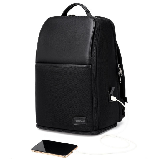 MYBALO ASTON Perfektní volba pro minimalisty s dobrým vkusem  6 ikon: - Nejtenčí batoh - Elegantní - Kapsa na notebook do 15,6" - Kapsa na tablet do 9" - Otevírání o 180 stupňů - USB a USB-C port - Drží tvar - Voděodolný - Skryté kapsy  Elegantní a minimalistický Jedná se o velmi elegantní a minimalistický batoh. S tímto parťákem neuděláte chybu při běžném nošení do města, ani na důležité schůzce.  Tenký batoh MYBALO Aston je batoh s vůbec nejmenší hloubkou z naší nabídky. Díky tomu působí elegantně a minimalisticky, ale i přesto se do něj vejdou všechny vaše nezbytnosti.  Kvalitní voděodolný materiál, dlouhá životnost Kvalitní umělá kůže zajišťuje trvanlivost a odolnost batohu proti vodě a opotřebení. MYBALO Aston tak bude vaším společníkem opravdu dlouho.  Drží tvar Batoh si zachovává svůj tvar také v případě, že jej budete mít úplně prázdný.  Vestavěný USB a USB-C port Nabíjejte svá elektronická zařízení kdekoli a kdykoli díky vestavěnému USB a USB-C portu.  Popruh k uchycení na kufr Cestujte pohodlně. Kdykoli chcete mít volná záda, jednoduše připevněte batoh na rukojeť svého kufru.  Pohodlné polstrování Užijte si komfortní nošení díky kvalitnímu a prodyšnému polstrování ramenních popruhů a zádové části.  Další praktické kapsy Zorganizujte si pohodlně a snadno své věci díky množství vychytaných kapes.  Skryté kapsy V zádové části a na ramenním popruhu najdete skryté kapsy pro bezpečné uložení cenností.  Vnitřní kapsy Vnitřní kapsy slouží pro snadnou organizaci všech vašich věcí.  Přední kapsa Přední kapsa je určena pro věci, které chcete mít rychle a snadno po ruce.  Parametry: - Rozměry: 46 x 30 x 9 cm - Objem: 11 l - Hmotnost: 1,19 kg - Kapsa na notebook: Ano (do vel. 15,6") - Kapsa na tablet: Ano (do vel. 9") - USB port: Ano - Voděodolnost: Ano - Hlavní materiál: Ekokůže + Polyester - Podšívka: Polyester - Barva: Černá