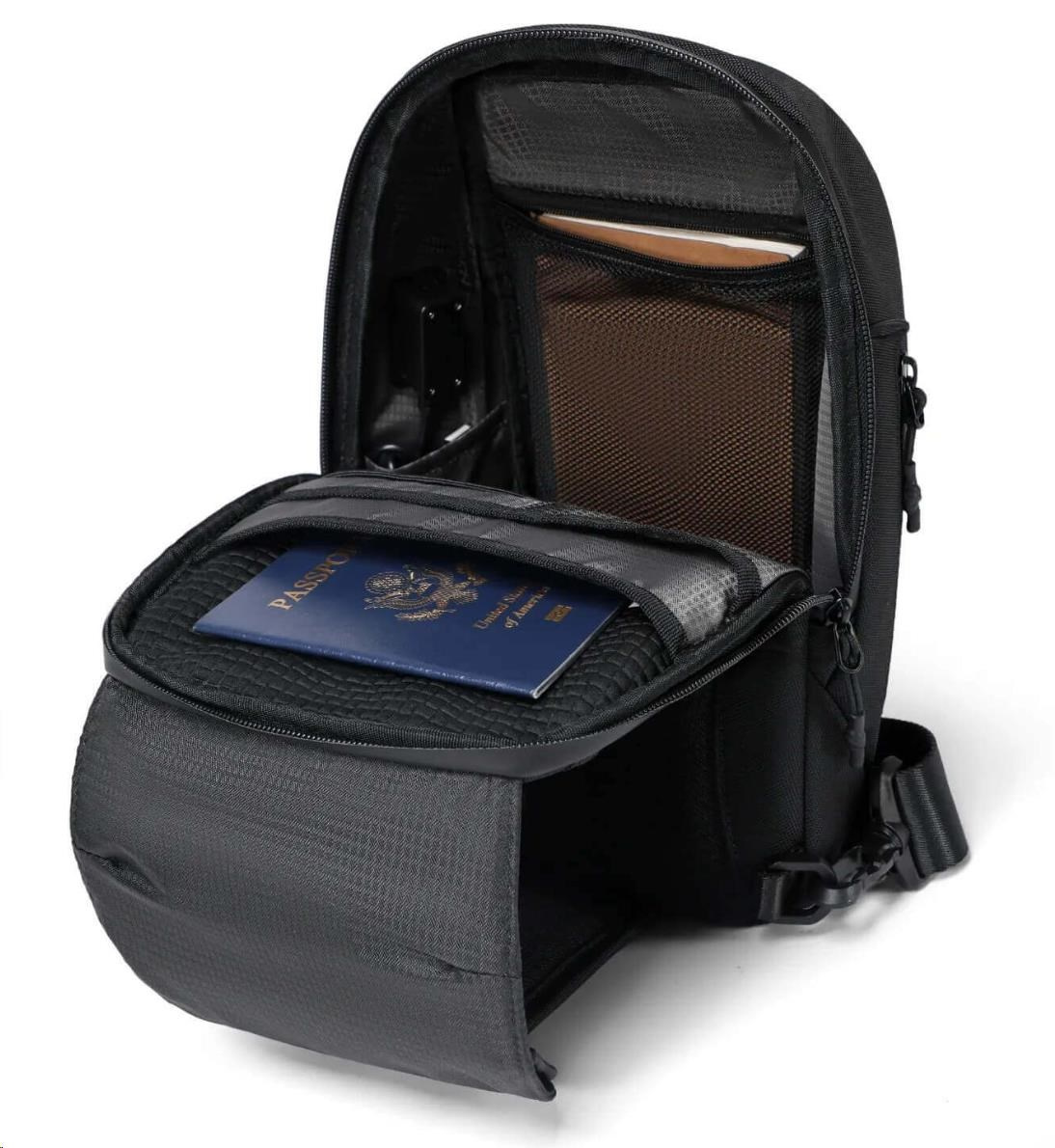 MYBALO ASTON Perfektní volba pro minimalisty s dobrým vkusem  6 ikon: - Nejtenčí batoh - Elegantní - Kapsa na notebook do 15,6" - Kapsa na tablet do 9" - Otevírání o 180 stupňů - USB a USB-C port - Drží tvar - Voděodolný - Skryté kapsy  Elegantní a minimalistický Jedná se o velmi elegantní a minimalistický batoh. S tímto parťákem neuděláte chybu při běžném nošení do města, ani na důležité schůzce.  Tenký batoh MYBALO Aston je batoh s vůbec nejmenší hloubkou z naší nabídky. Díky tomu působí elegantně a minimalisticky, ale i přesto se do něj vejdou všechny vaše nezbytnosti.  Kvalitní voděodolný materiál, dlouhá životnost Kvalitní umělá kůže zajišťuje trvanlivost a odolnost batohu proti vodě a opotřebení. MYBALO Aston tak bude vaším společníkem opravdu dlouho.  Drží tvar Batoh si zachovává svůj tvar také v případě, že jej budete mít úplně prázdný.  Vestavěný USB a USB-C port Nabíjejte svá elektronická zařízení kdekoli a kdykoli díky vestavěnému USB a USB-C portu.  Popruh k uchycení na kufr Cestujte pohodlně. Kdykoli chcete mít volná záda, jednoduše připevněte batoh na rukojeť svého kufru.  Pohodlné polstrování Užijte si komfortní nošení díky kvalitnímu a prodyšnému polstrování ramenních popruhů a zádové části.  Další praktické kapsy Zorganizujte si pohodlně a snadno své věci díky množství vychytaných kapes.  Skryté kapsy V zádové části a na ramenním popruhu najdete skryté kapsy pro bezpečné uložení cenností.  Vnitřní kapsy Vnitřní kapsy slouží pro snadnou organizaci všech vašich věcí.  Přední kapsa Přední kapsa je určena pro věci, které chcete mít rychle a snadno po ruce.  Parametry: - Rozměry: 46 x 30 x 9 cm - Objem: 11 l - Hmotnost: 1,19 kg - Kapsa na notebook: Ano (do vel. 15,6") - Kapsa na tablet: Ano (do vel. 9") - USB port: Ano - Voděodolnost: Ano - Hlavní materiál: Ekokůže + Polyester - Podšívka: Polyester - Barva: Černá
