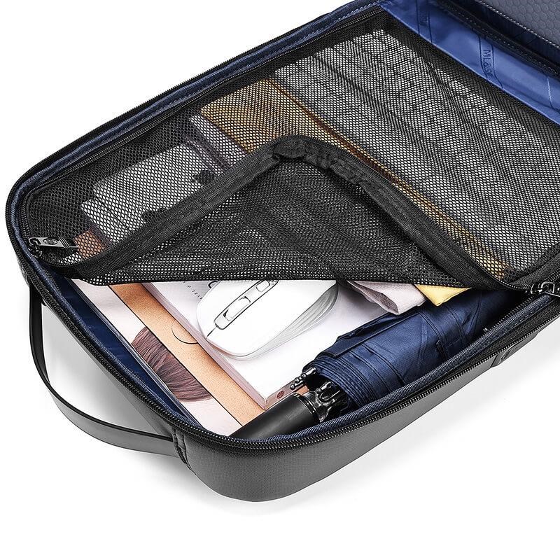 MYBALO Haag je elegantní minimalistický business batoh. Skvěle se hodí do města i do práce. Nabízí úložný prostor o objemu16 l, přihrádku na notebook do úhlopříčky 15,6", tablet do úhlopříčky 9" a USB port pro nabíjení elektronických zařízení kdekoli a kdykoli. Hlavní kapsu a kapsu na notebook a tablet lze otevřít až o 180 stupňů, což je velmi praktické při ukládání i hledání věcí. Pro ještě větší přehlednost můžete využít dostatek vnitřních přihrádek a přední kapsu. Díky kvalitnímu polstrování je nošení velmi pohodlné. Pokud s batohem cestujete, můžete využít praktický držák na kufr. Batoh je vyroben z nepromokavého kvalitního materiálu s dlouhou životností. Ochrání tak všechny vaše věci před vlivy počasí a vydrží vám opravdu dlouho. Businessový batoh MYBALO Haag je skvělou volbou do práce, do města, na pracovní cesty i pro volný čas.
