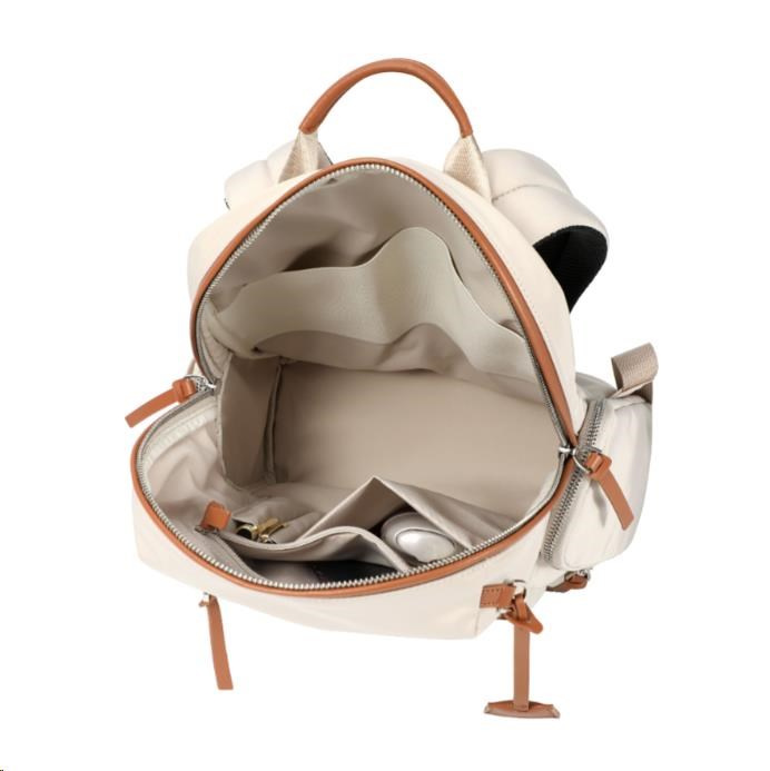 Batoh je dostupný vo dvoch farebných variantoch: béžové s hnedými detailmi a čierne, univerzálne k rôznemu oblečeniu.