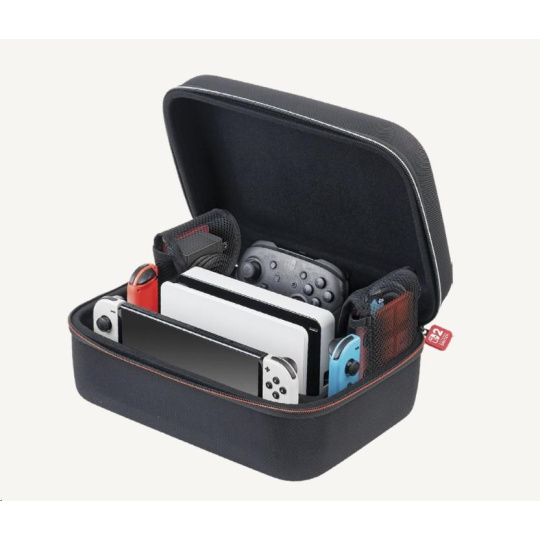 Táto luxusná cestovná taška od spoločnosti Nacon je určená všetkým majiteľom hernej konzoly Nintendo Switch 2, ktorí hľadajú špičkovú ochranu aj maximálnu praktickosť pri prevážaní konzoly spolu so všetkým jej príslušenstvom. Taška je vyrobená z vysoko odolného nylonového materiálu a ponúka niekoľko samostatných priehradiek umožňujúcich bezpečné skladovanie a prenášanie nielen samotnej konzoly, ale aj dokovacej stanice a držiaka Joy-Con 2 Charging Grip alebo nového ovládača Pro Controller, ako aj dvojice ďalších ovládačov Joy-Con 2. Do dvoch vyberateľných sieťovaných vreciek si následne môžete uložiť drobné príslušenstvo, ako je napájací adaptér s káblom, prepájací HDMI kábla, náramky na zápästie alebo priložené plastové púzdra pre herné a microSD karty. So taškou navyše získate aj čistiacu handričku s logom Nintendo Switch 2. Taška je kompatibilná tiež s konzolami Switch a Switch – OLED Model, vrátane ich príslušenstva.