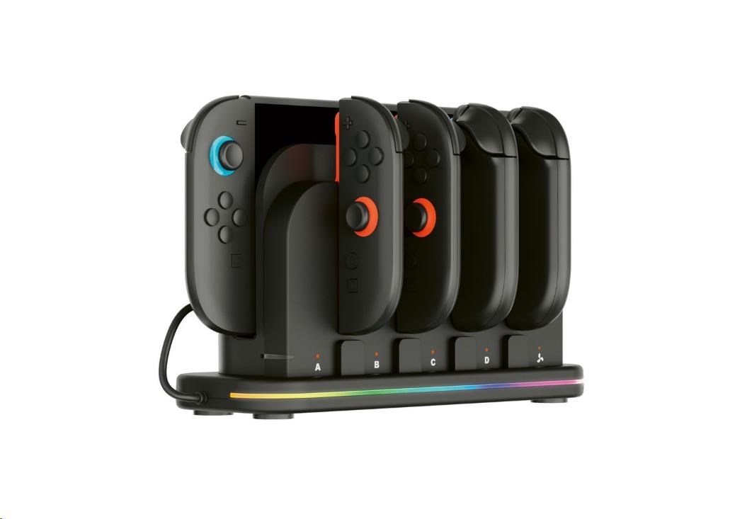 Táto nabíjacia dokovacia stanica od spoločnosti Nacon príde vhod všetkým majiteľom novej hernej konzoly Nintendo Switch 2 aj pôvodnej hernej konzoly Nintendo Switch, ktorí často potrebujú nabíjať väčší počet ovládačov Joy-Con. Stanica umožňuje nabíjať súčasne až štyri ovládače, ako aj samotnú konzolu, ktorej zabraňuje prehriatiu zabudovaný chladicí vetrák. O stave nabíjania každého z ovládačov informuje príslušný LED ukazovateľ, zatiaľ čo RGB pásik s výberom z deviatich rôznych efektov dodáva stanici štýlový, moderný vzhľad. Pretože napájací USB-C kábel nie je súčasťou balenia, slúži na pripojenie stanice do elektrickej siete originálne napájacie príslušenstvo dodávané s konzolou.