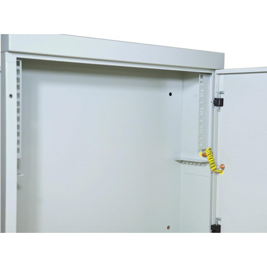 dvierka nie sú perforované, takže sa do skrinky nič nevtlačí a zároveň sa v nej nenachádzajú žiadne LED diódy aktívnych prvkov, čo je nežiaduce. Dvere sú spojené so skeletom pomocou uzemňovacieho kábla.