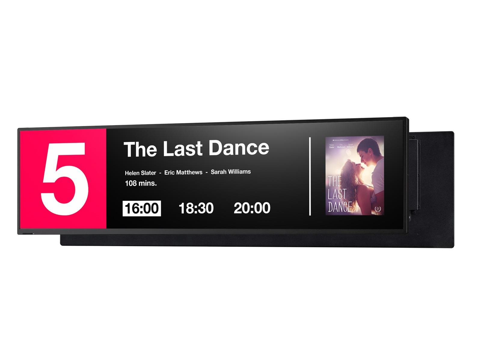 Obzvlášť široký pomer obrazovky 16:4 s výškou displeja iba 28,9 cm umožňuje inštaláciu v stiesnených priestoroch a zabezpečuje ostrý a príjemný obraz.