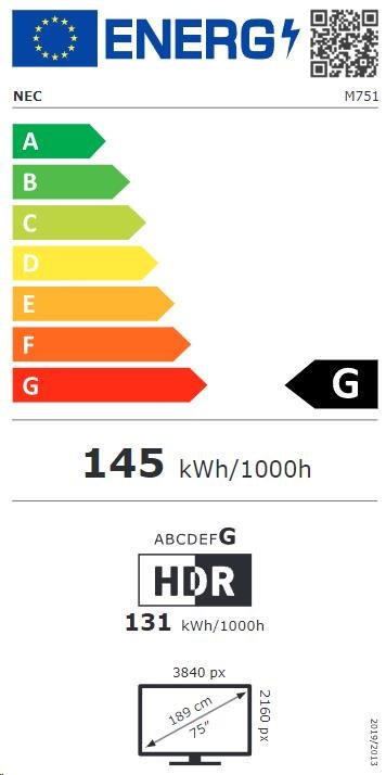 | Energetická účinnosť | Spotreba energie: Trieda energetickej účinnosti: 145 kWh/1000 h: G; LED podsvietenie |